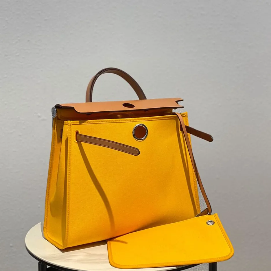 Brown leather with yellow H Berline canvas